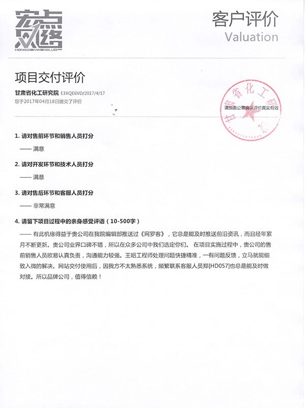 有此机缘得益于贵公司在我院编辑部推送过《网罗客》,它总是能及时推送前沿资讯,而且经年累月不断更新。贵公司业界口碑不错,所以在众多公司中我们选定你们。 在项目实施过程中,贵公司的售前销售人员欧易认真负责,沟通能力较强。王昭工程师处理问题快捷精准,一有问题反馈,立马就能细致入微的解决。网站交付使用后,因我方不太熟悉系统,频繁联系客服人员郑[HD057]也总是能及时做对接。所以品牌公司,值得信赖!