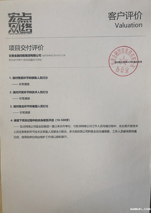伟德下载官网app公司是金控集团一直以来合作单位,与伟德下载官网app公司工作人员沟通过程中,无论是开发技术人员还是售后环节技术及客服人员都全力配合,多次前往我公司积极主动沟通思路,工作人员都保质保量完成,使得我单位网站维护工作得以顺利展开。